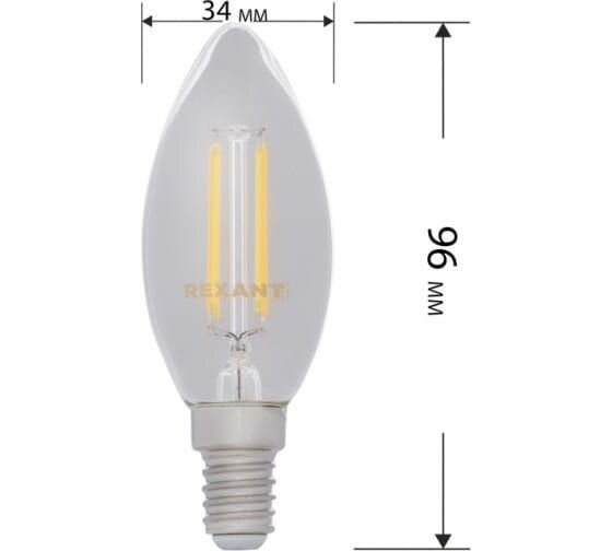 Лампа филаментная REXANT (604-087) CN35 7.5 Вт 600 Лм 2700K E14 диммируемая, прозрачная колба информация: