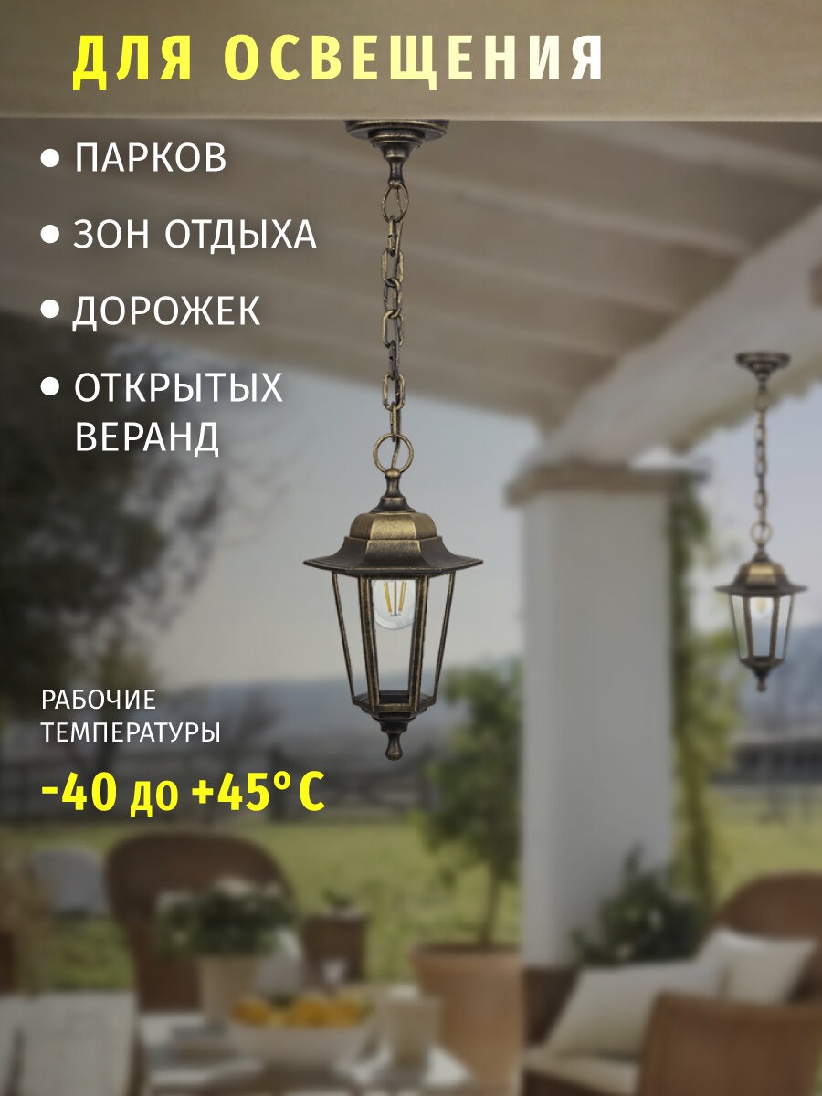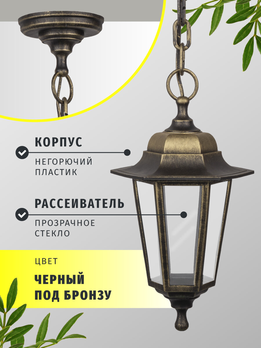 10 цен на Светильник садовый подвесной Navigator 80 484, 6 граней, черный под бронзу, IP44, цоколь E27