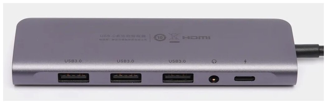 Адаптер UGREEN CM136 (80132) USB C to 3×USB 3.0+HDMI+3.5mm (2-in-1)+PD Adapter. Цвет: серый