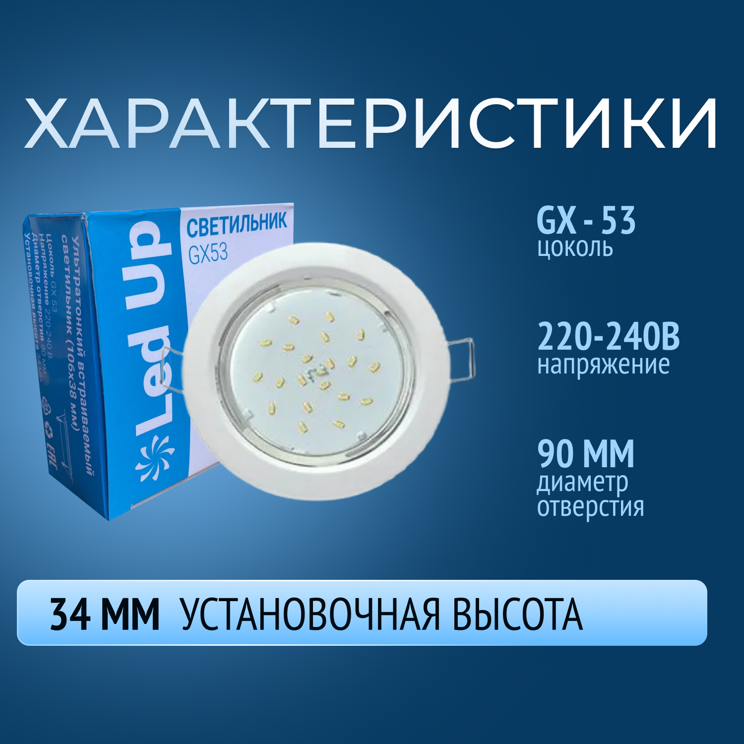 10 цен на Светильник светодиодный GX53R-mini RW GX53 230В ультратонкий встраиваемый точечный метал. бел. IN HOME 4690612008431 (100шт.в упак.)