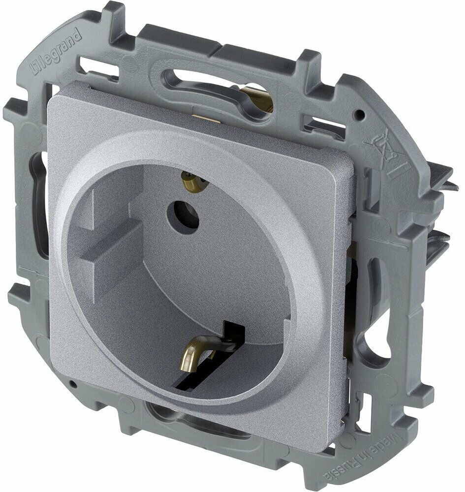 Розетка 2К+З со шторками немецкий стандарт 16 А 250 В~ INSPIRIA алюминий 673732 Legrand (8шт.) информация: