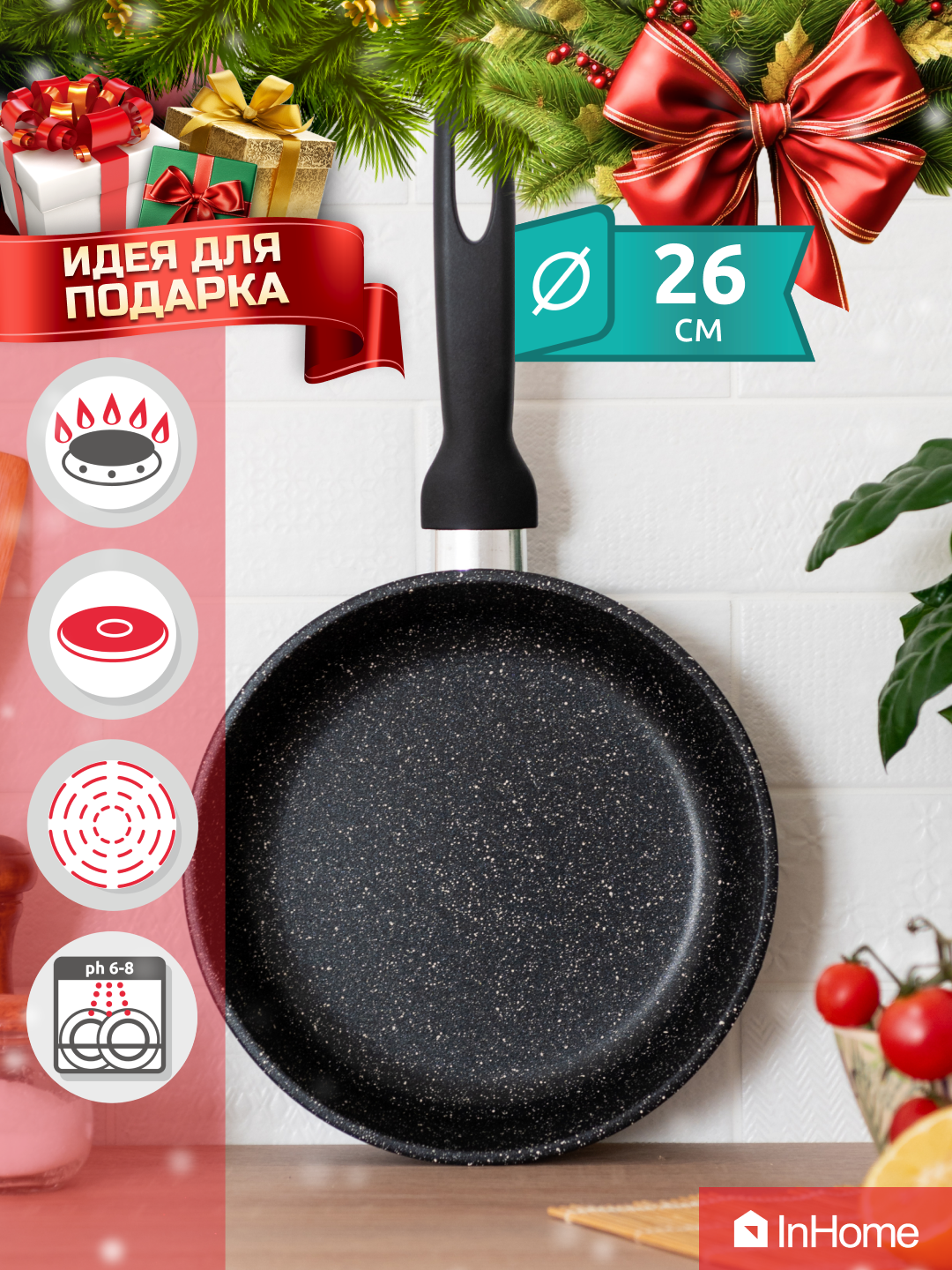 10 цен на Литая сковорода с антипригарным покрытием, InHome IN26/G0