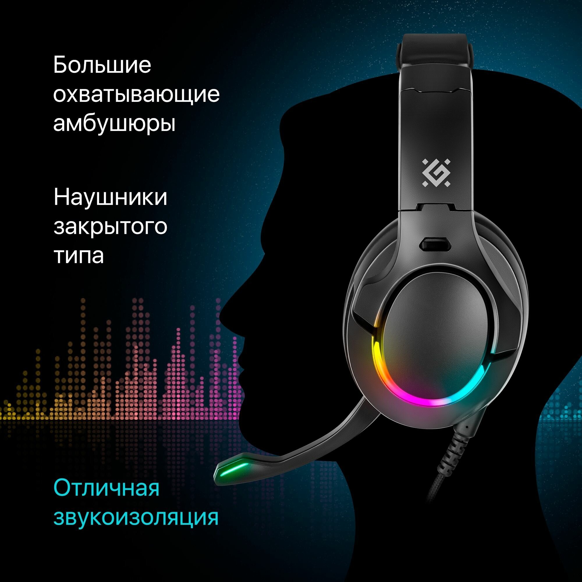 Наушники Defender Galaxy Pro 7.1 игровые, с микрофоном, USB, подсветка, черный