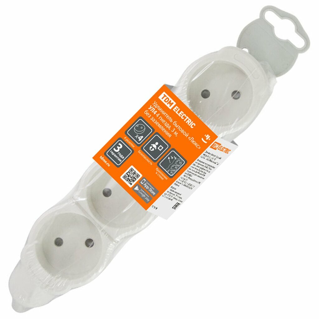Удлинитель бытовой TDM Люкс SQ1303-0227 (белый, 4 розетки, 10A, 3м) информация: