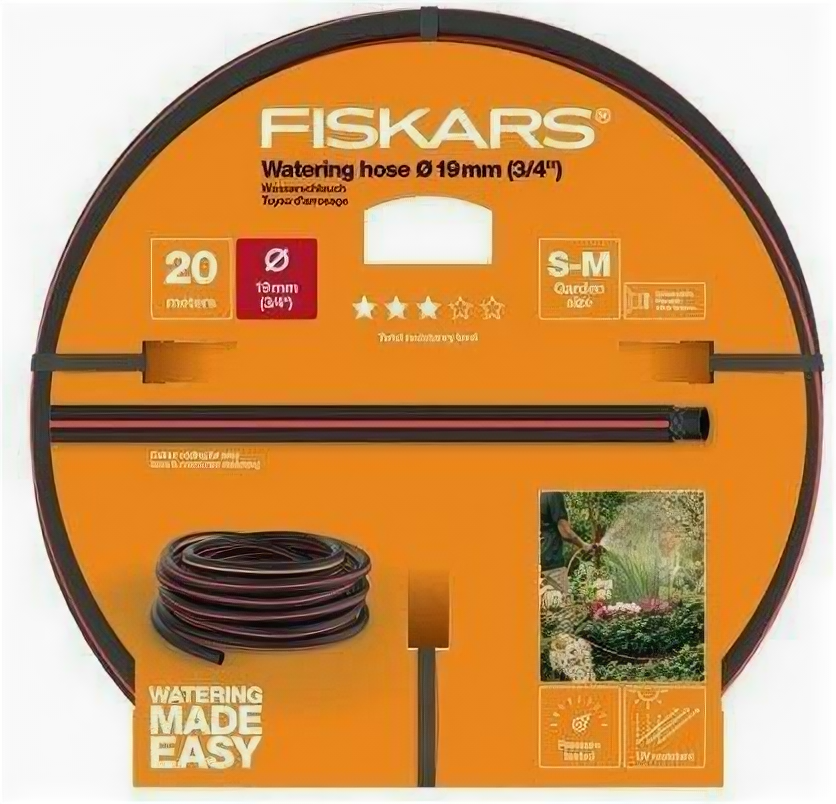 Отзывы на Шланг Fiskars 1027109 3/4 20м поливочный армированный черный/красный