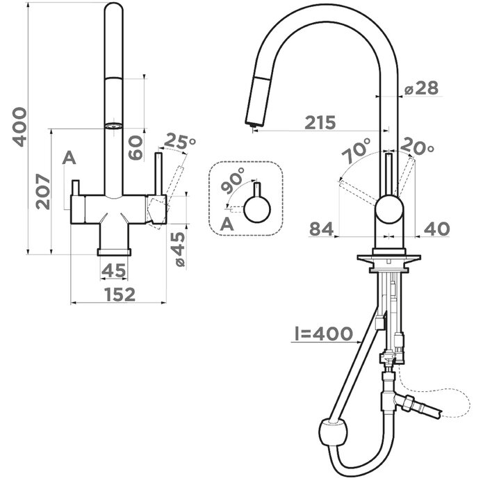 | Функции | выдвижной излив |