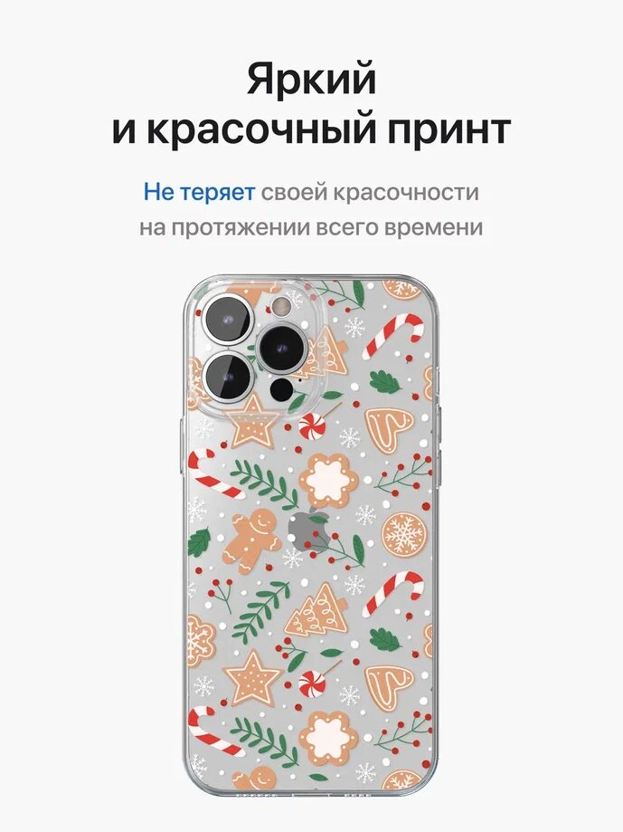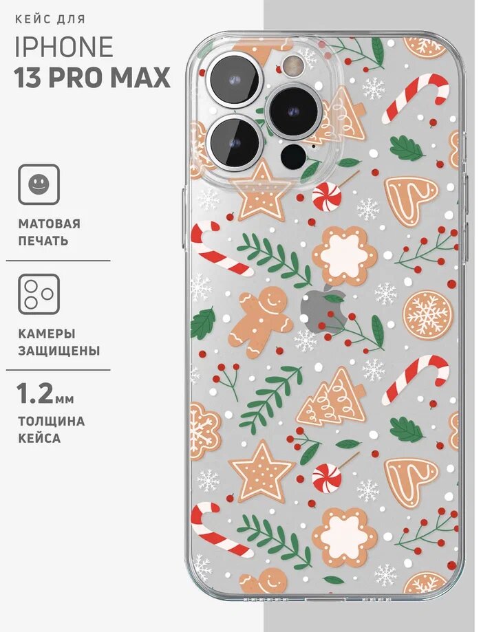 Отзывы на Чехол на iPhone 13 Pro Max / Айфон 13 Про Макс прозрачный с принтом "Gingerbread pattern"