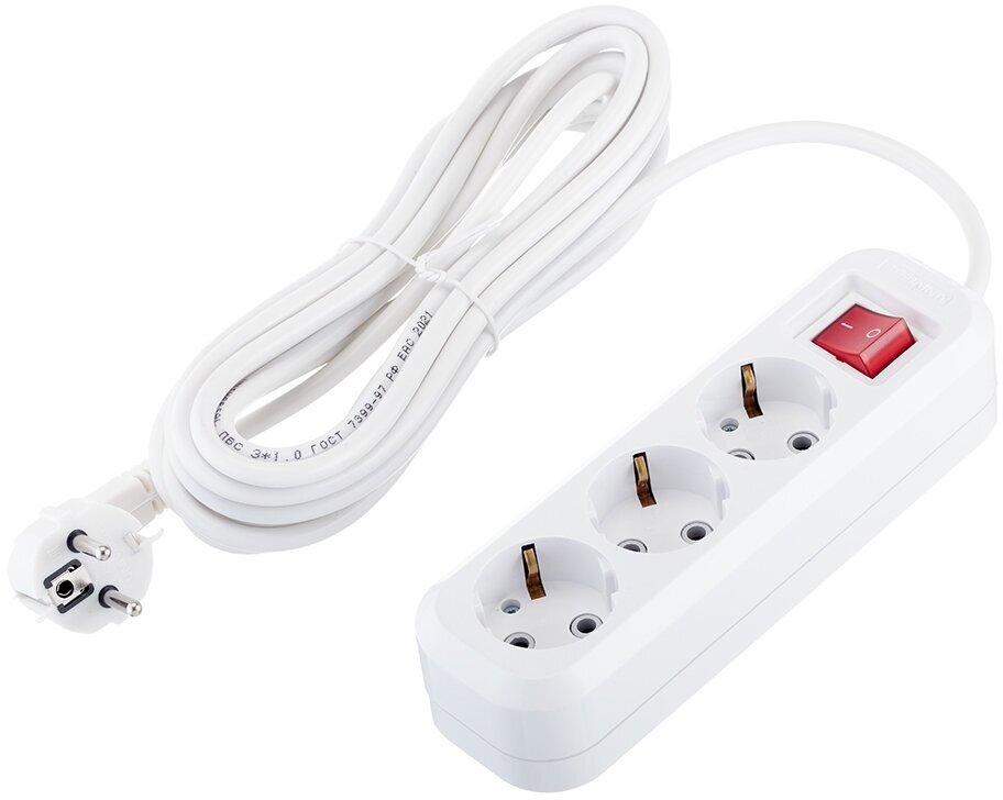Удлинитель UNIVersal 3 розетки 5 м ПВС 3х1 мм2 13 А 2,9 кВт с кнопкой белый (9631987)