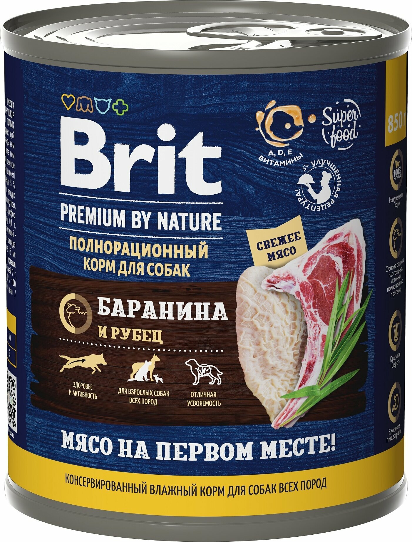 Brit Premium by Nature консервы для собак (паштет) Баранина и рубец, 850 г. информация: