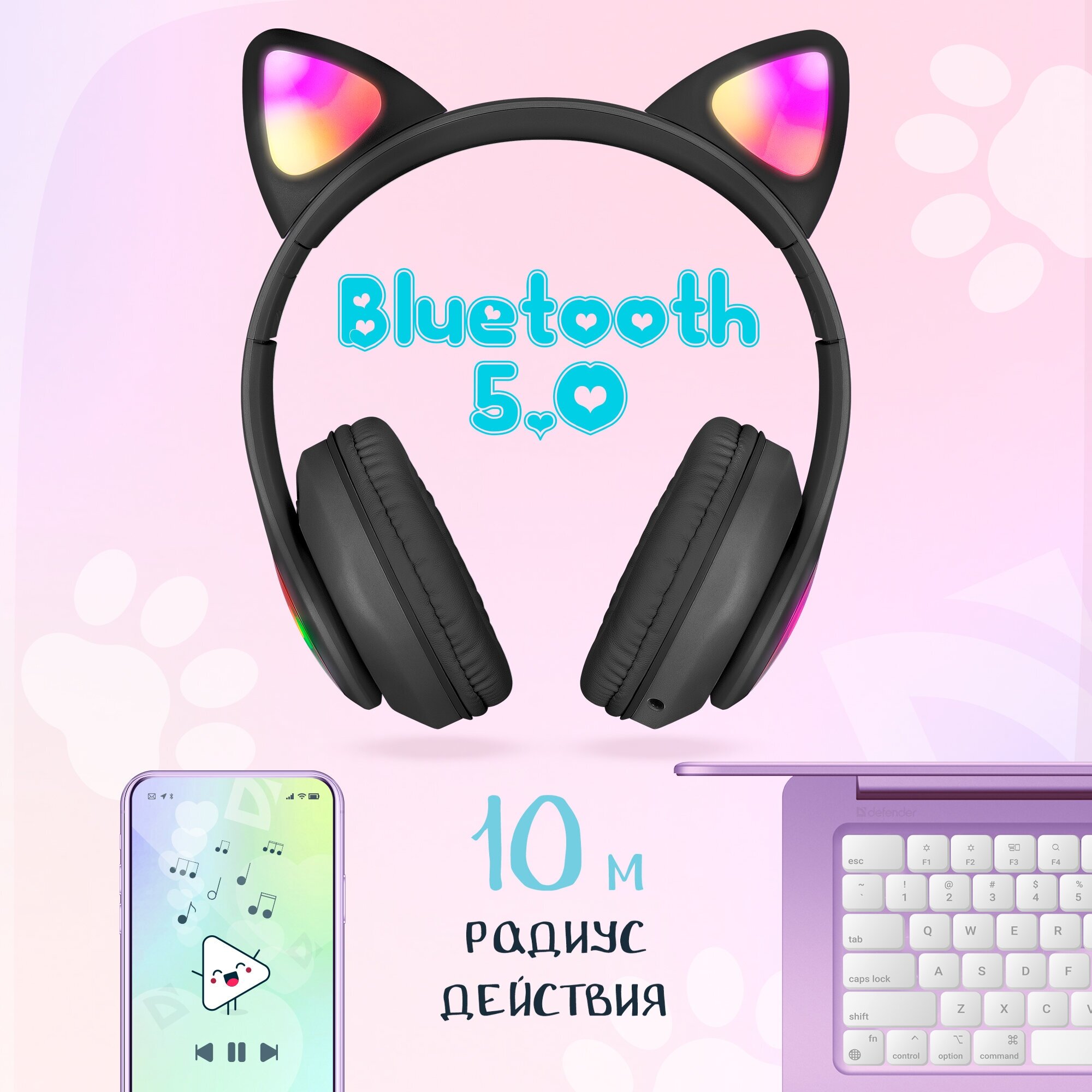 Наушники беспроводные накладные Defender FreeMotion 585, Bluetooth 5.0 + microSD + MP3 плеер, черный, LED подсветка