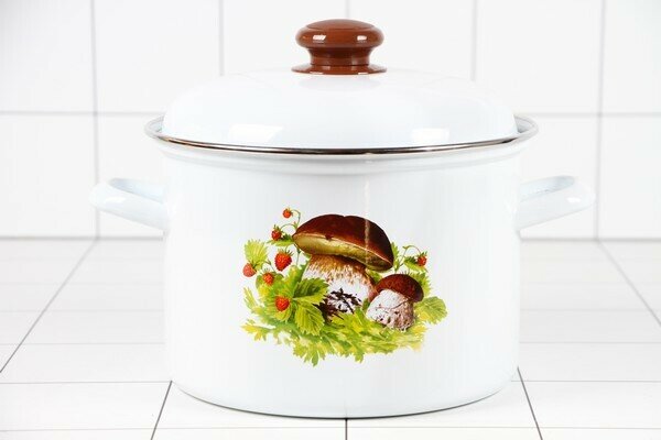 Кастрюля эмалированная 4,5 л с рисунком Грибная поляна