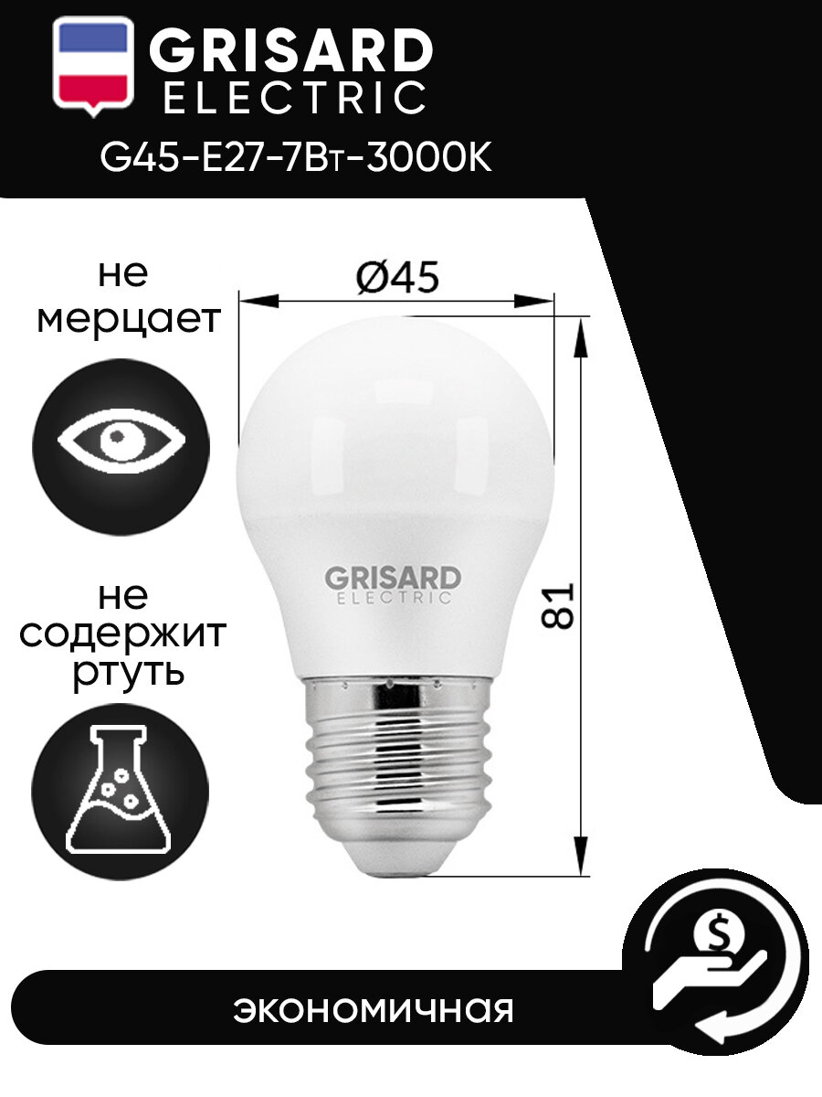 Отзывы на Лампа светодиодная GRISARD ELECTRIC шар G45 E27 7Вт 3000К 220В 1шт