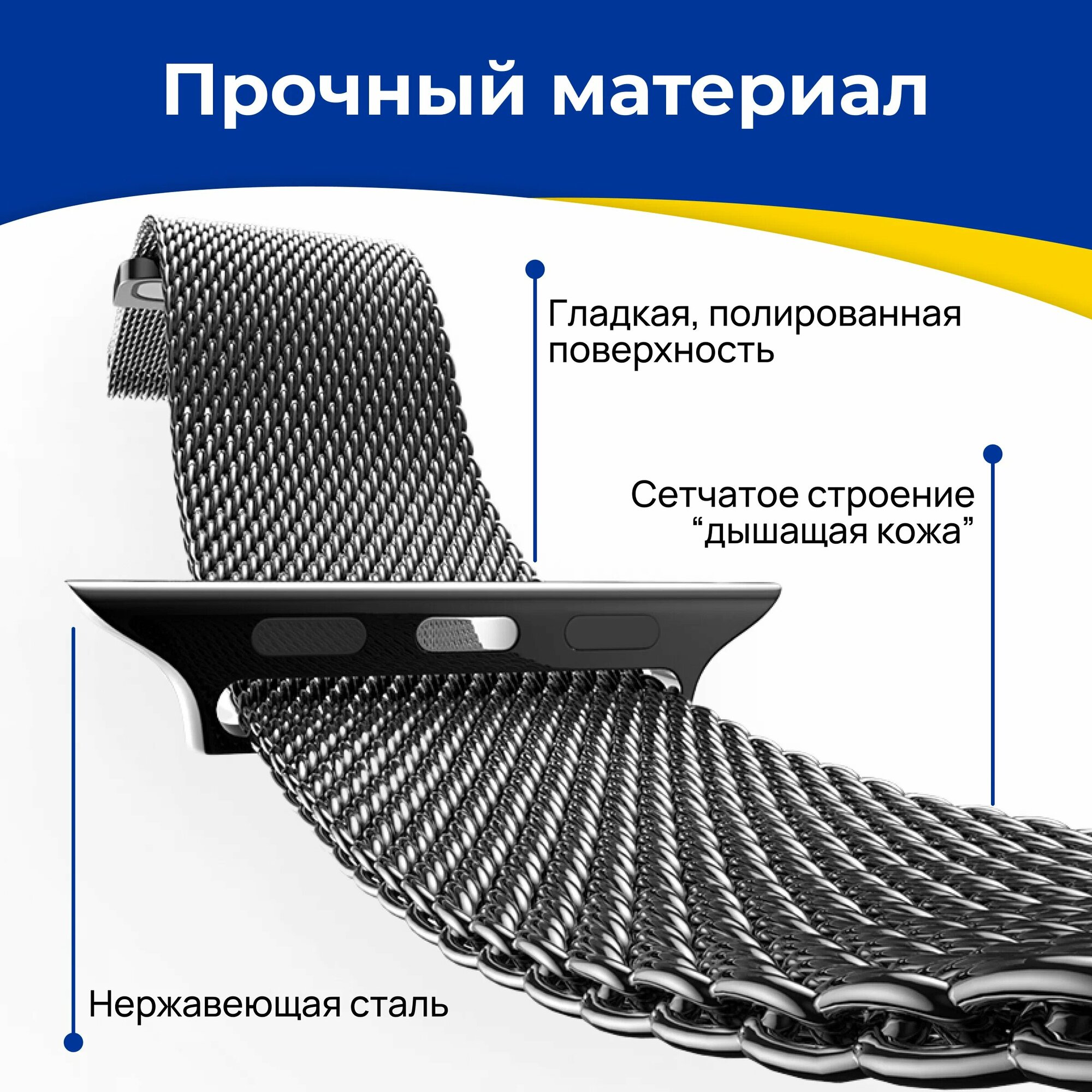 Отзывы на Металлический ремешок на Apple Watch 1-9, SE 38-40-41 мм / Браслет миланская петля для смарт часов Эпл Вотч 1, 2, 3, 4, 5, 6, 7, 8, 9, СЕ / Синий
