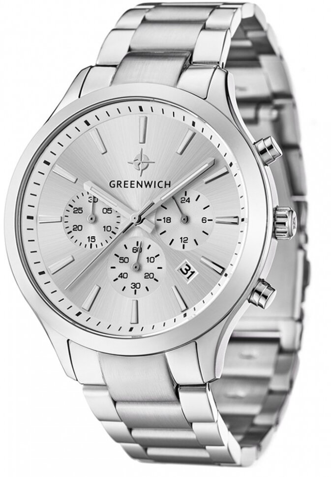 Английские кварцевые часы Greenwich GW 043.10.33 на стальном браслете, с водозащитой 10 бар и международной гарантией от производителя информация: