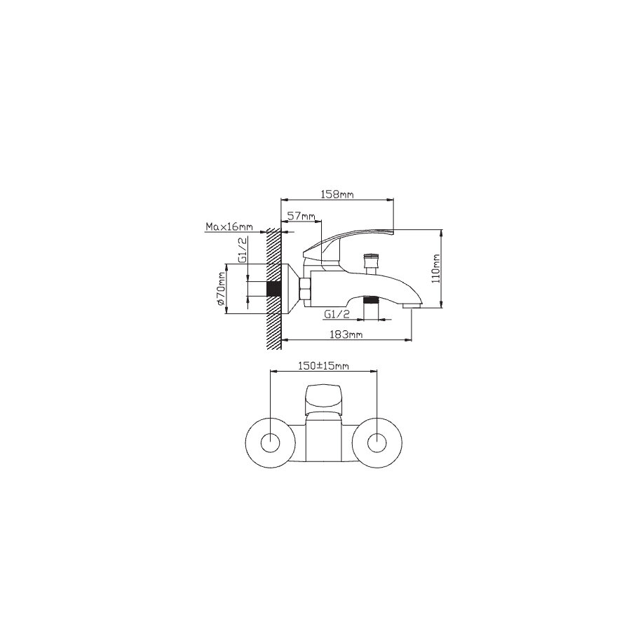 Смеситель на раковину настенный Эверест B46-350 с круглым поворотным изливом, кран-буксы 1/2", хром