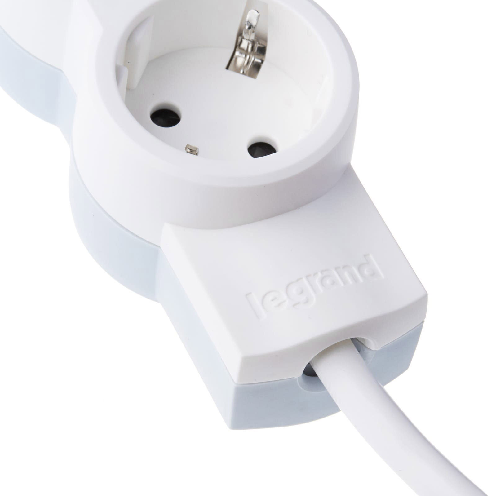 Удлинитель с заземлением Legrand 4 розетки с кабелем 1,5 м, цвет: бело-серый , арт. 694552