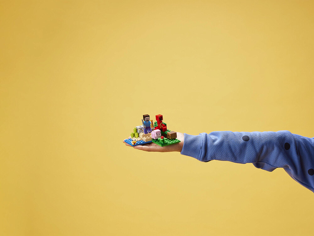 | Комплектация | серия и тема: Minecraft; персонажи: Стив, поросенок, цыпленок и красный взрывающийся крипер |