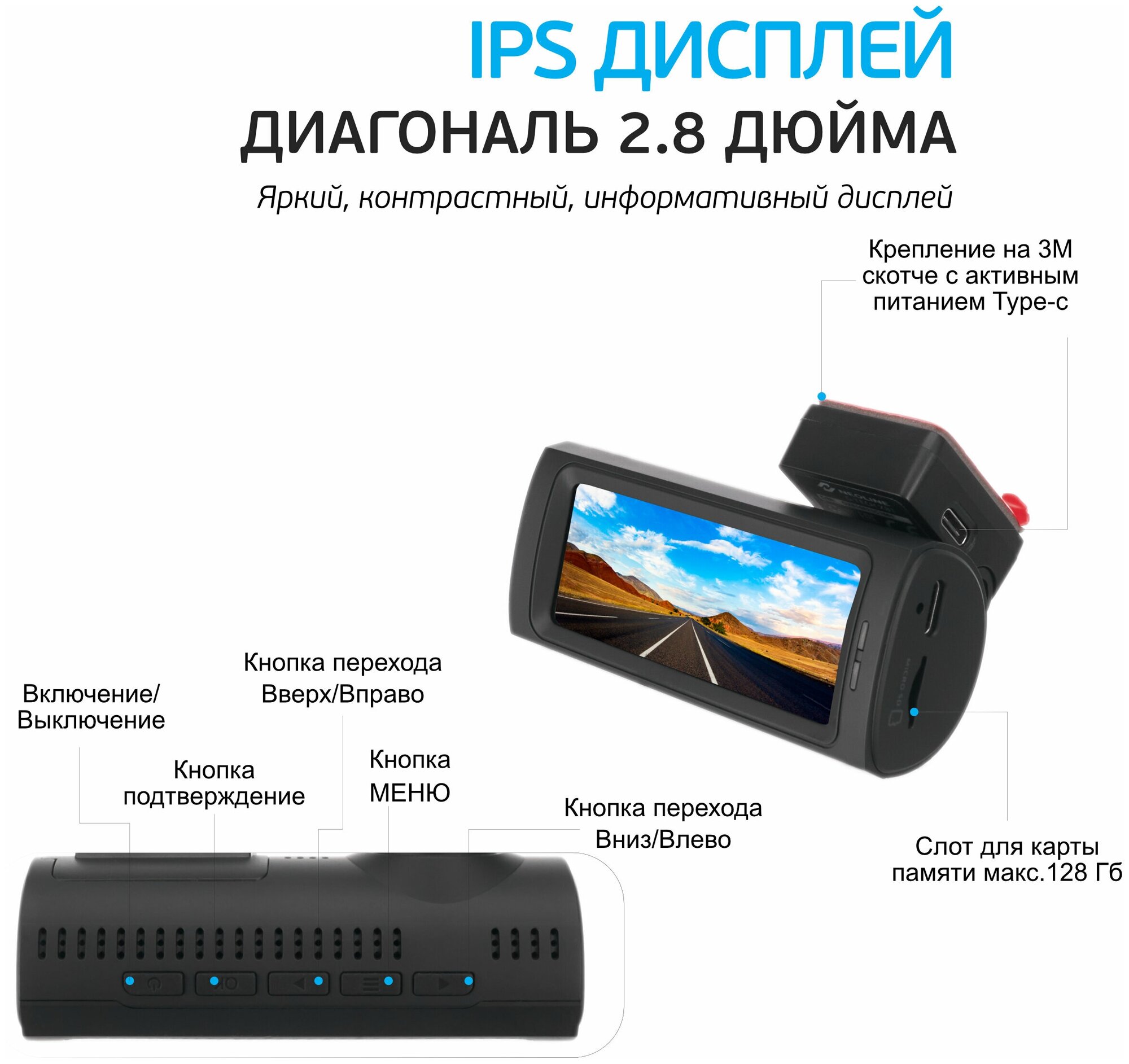 Автомобильный видеорегистратор Neoline черный 1440x2560 1440p 160гр. информация: