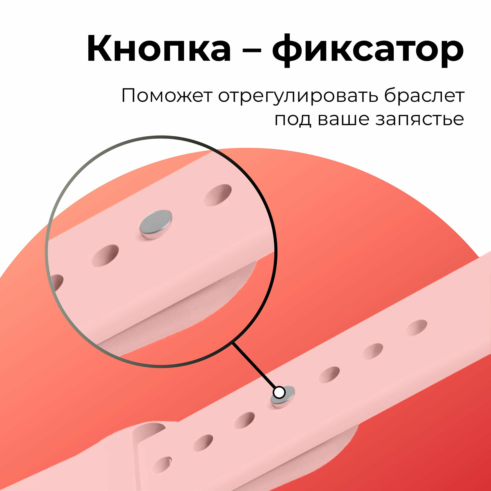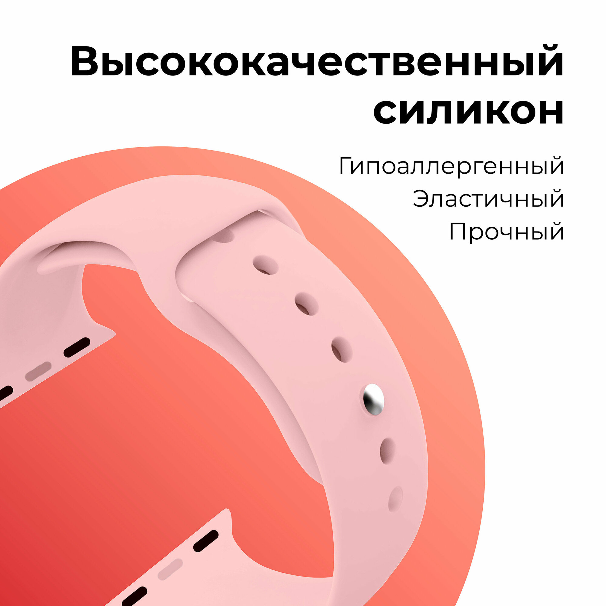 10 цен на Силиконовый ремешок для Apple Watch 42-44-45-49 mm, Series 1-9, SE, Ultra / Сменный браслет (Sport Band) для часов Эпл Вотч 42-49 мм (Pink Sand S)