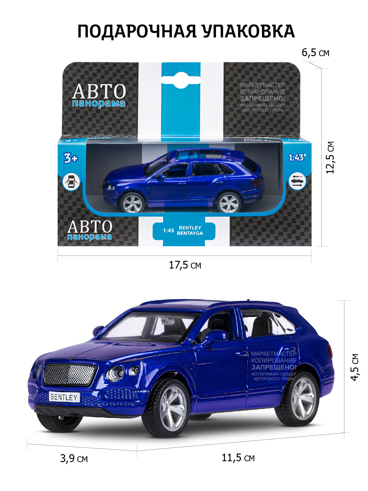 Легковой автомобиль Автопанорама Bentley Bentayga (J12290/JB1200142) 1:45, 11.5 см, синий 579 ₽