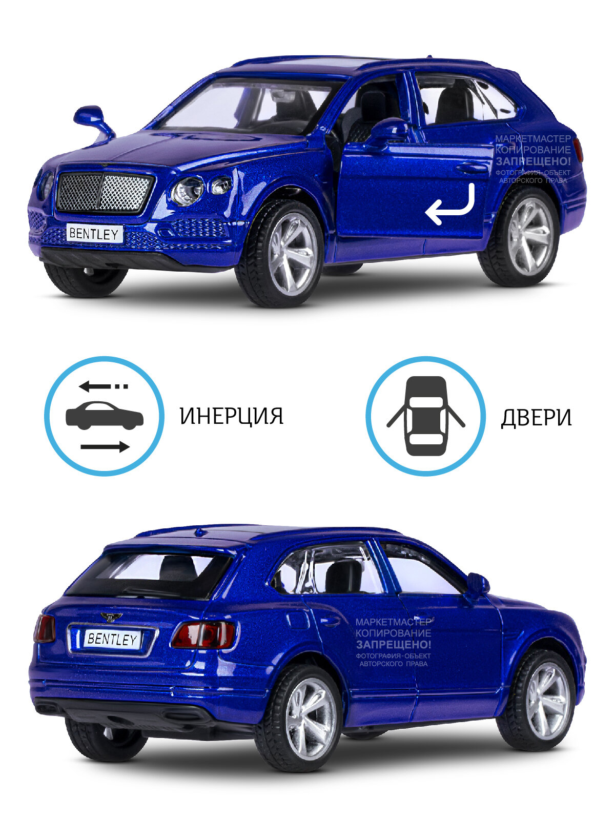 Машинка металлическая Автопанорама 1:45, Bentley Bentayga, синий, инерция, открываются двери, в коробке (JB1200142)