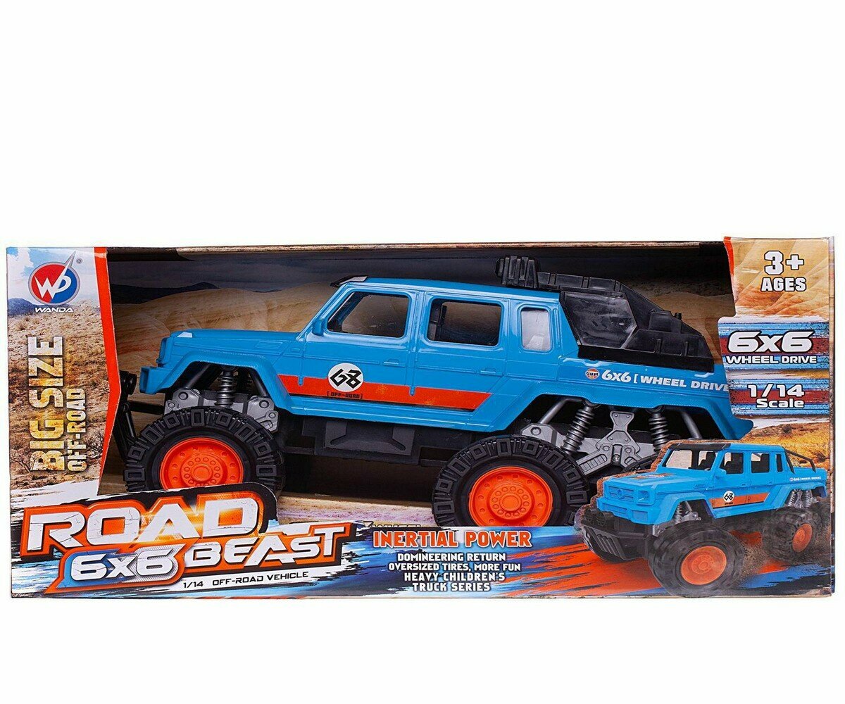 Машинка Junfa Джип-внедорожник 6х6 Дорожный зверь, 1:14, синяя (WC-11568) информация: