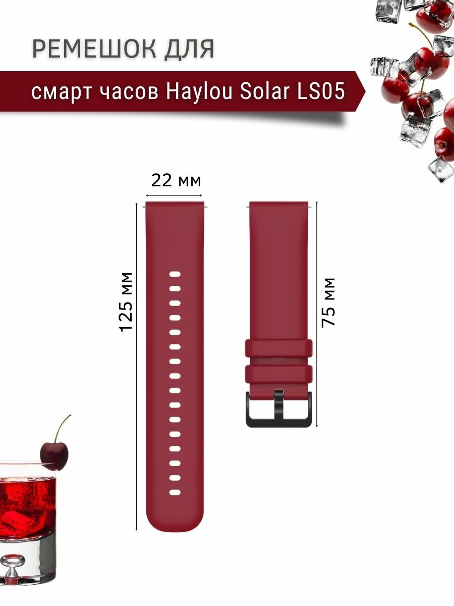 Ремешок для смарт-часов Haylou шириной 22 мм, силиконовый, Gamma, бордовый информация: