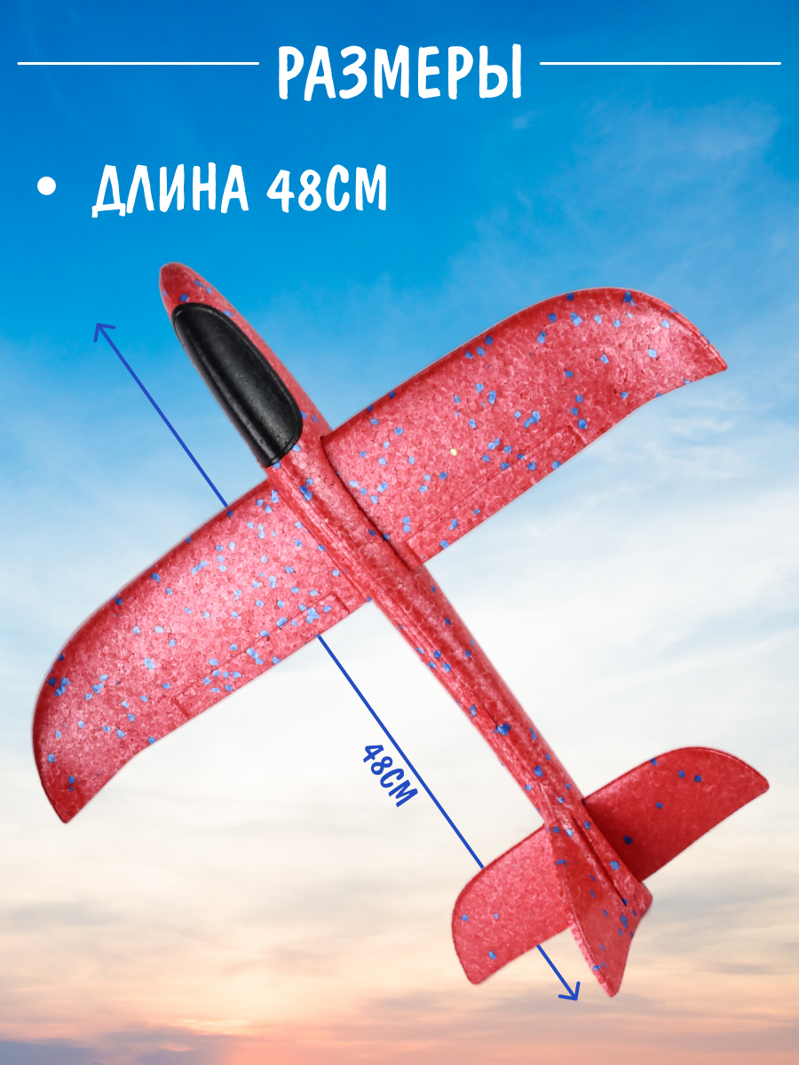 Самолет метательный / Самолет пенопластовый / Планер 48 см, красный