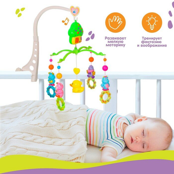 Мобиль в кроватку для новорожденных, Умка, 7 колыбельных, съемные игрушки, звуки природы