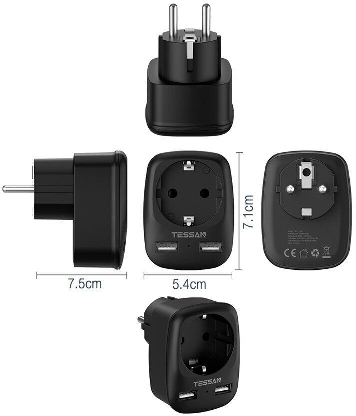 Сетевой фильтр TESSAN TP-VB4U6E Black