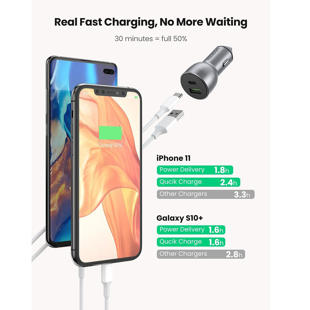 10 цен на Автомобильное зарядное устройство Ugreen CD213 USB-C PD + USB-A QC 42.5W Fast Car Charger (60980)