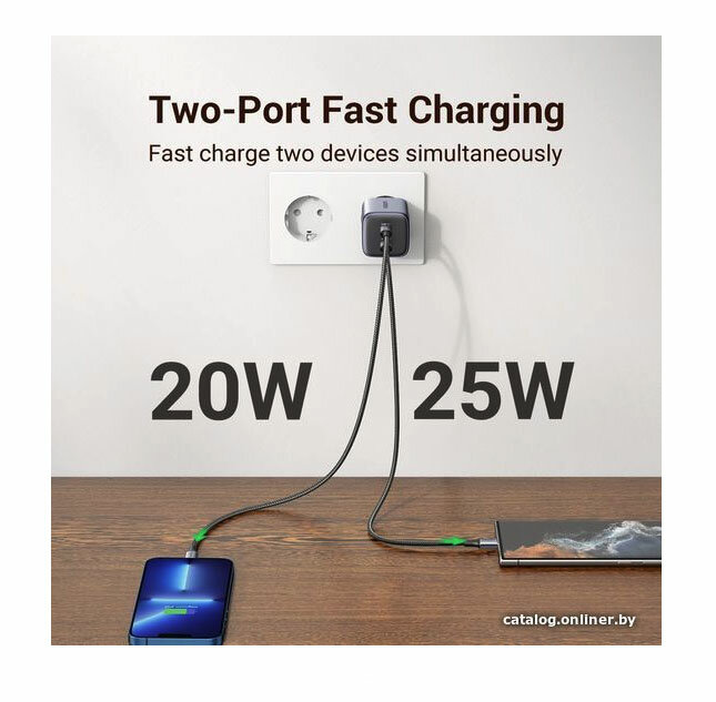 Сетевое зарядное устройство UGREEN CD294 (90573) Nexode Mini USB-C+USB-C 45W PD c GaN технологией информация: