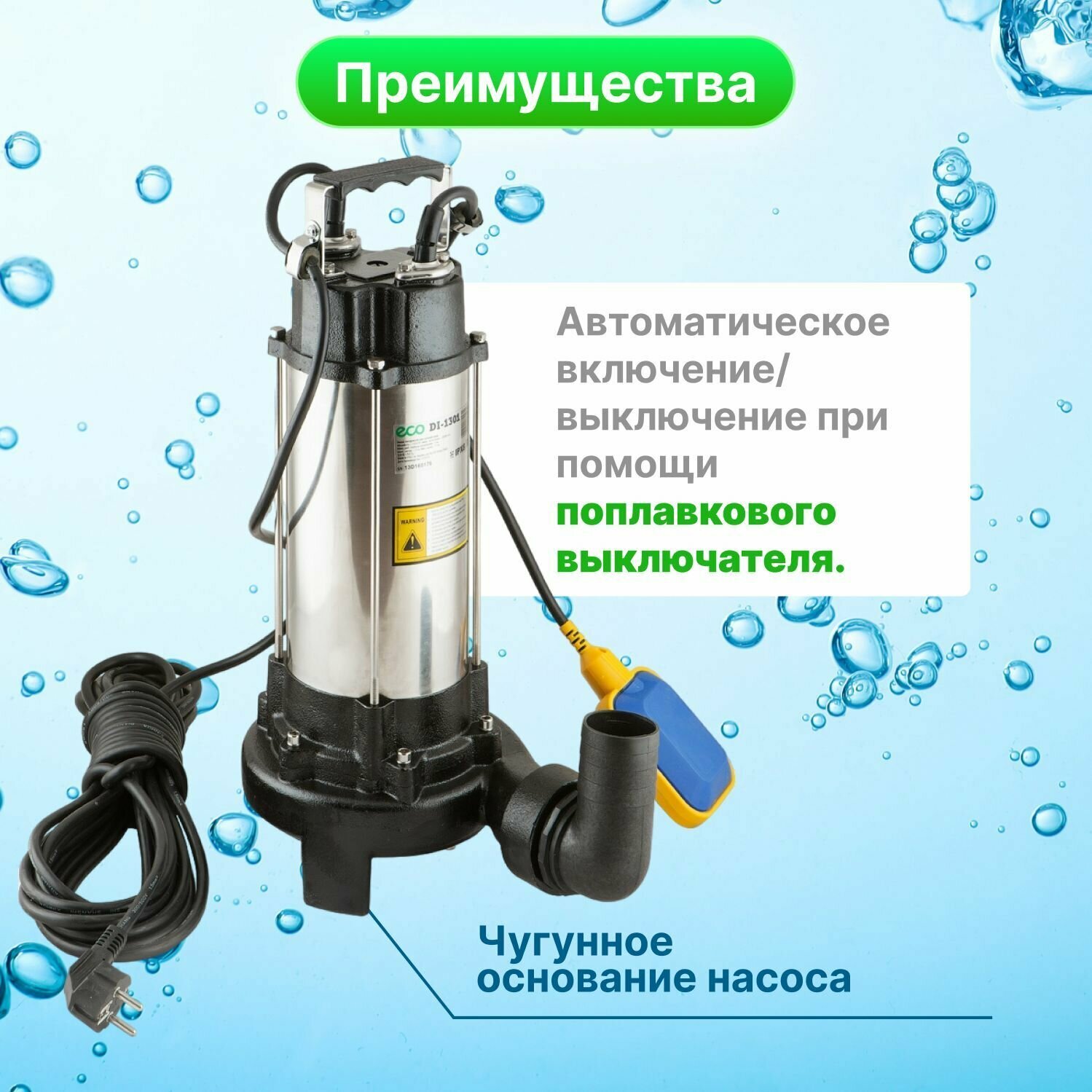 Насос погружной для грязной воды, нерж. ECO DI-1301, 1300 Вт, 23000 л/ч, до 12 м (С измельчителем, 1300 Вт, 23000 л/ч, до 12 м,)