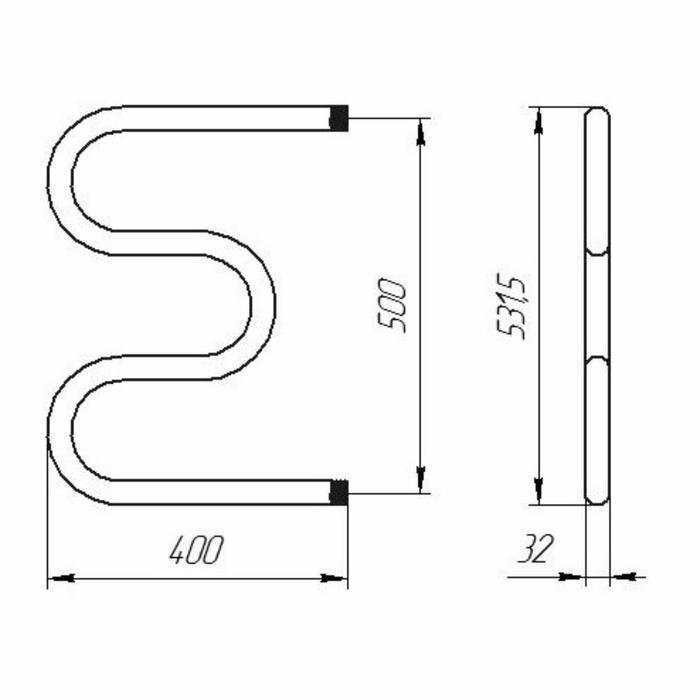 Полотенцесушитель водяной ТЕРА, М-образный, 500х400 мм, D-32 мм, наружная резьба 1" информация: