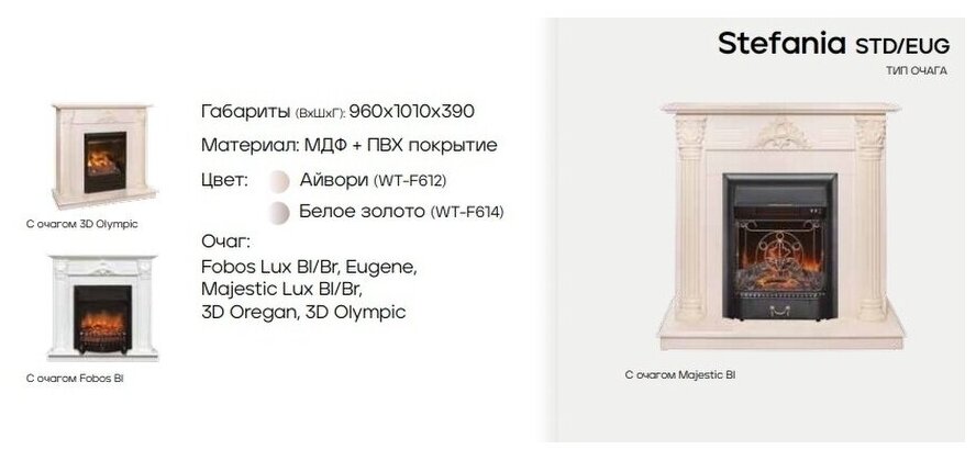 Электрокамин RealFlame STEFANIA R STD/EUG WT-F612 с очагом 3D Oregan информация: