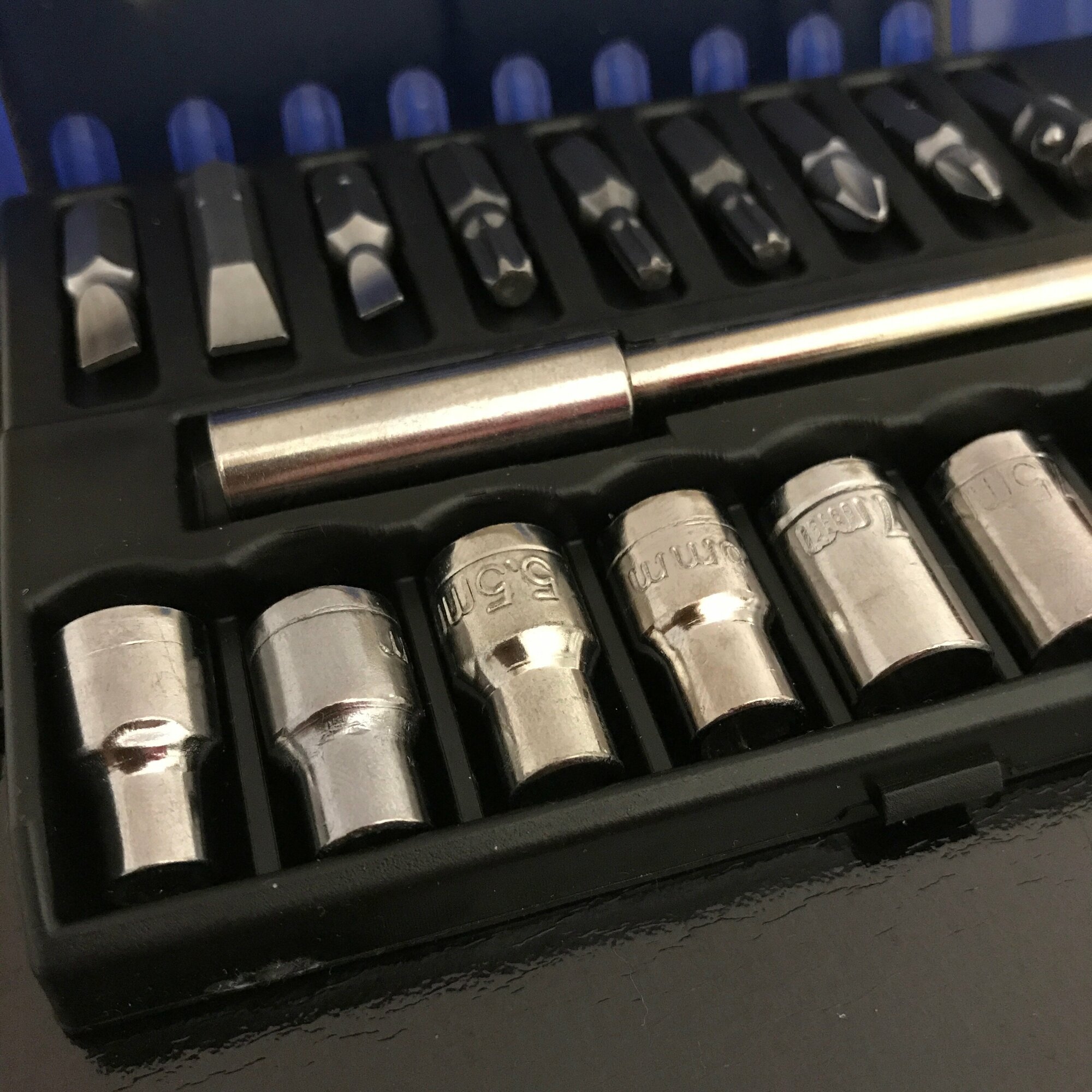 Отвертка с битами и торцевыми головками в пластиковом боксе информация: