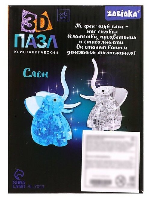 10 цен на 3D пазл «Слон», кристаллический, 20 деталей, цвета микс