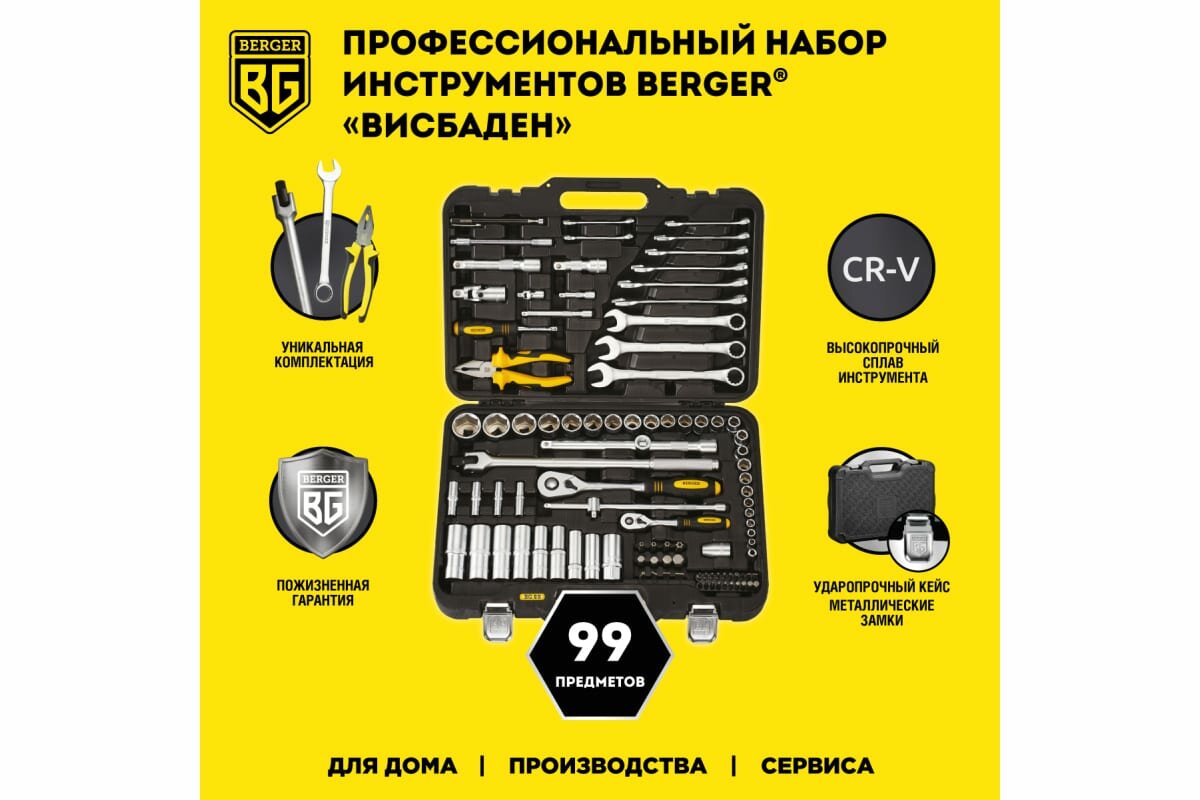 Профессиональный набор инструментов BERGER 99 предметов 1/2 - 1/4 «висбаден» BG099-1214