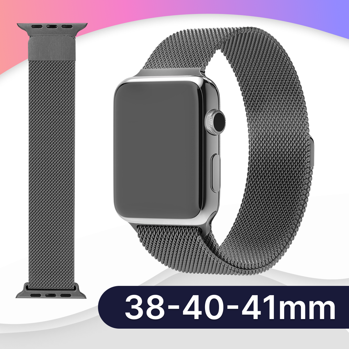 Ремешок миланская петля для Apple Watch 38-40-41 mm, Series 1-9, SE / Металлический браслет для смарт часов Эпл Вотч 38-40-41, СЕ, 1-9, Графит информация: