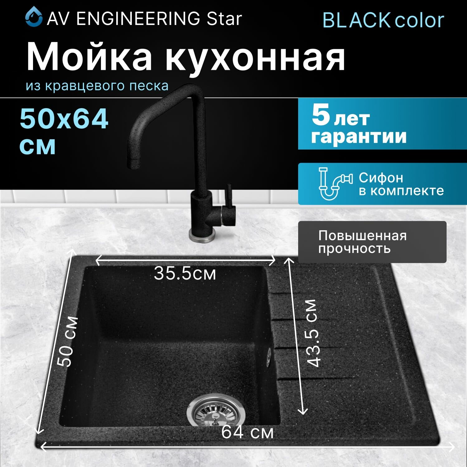 Мойка из искусственного камня AV ENGINEERING Best черный (AV650500BBKA) информация: