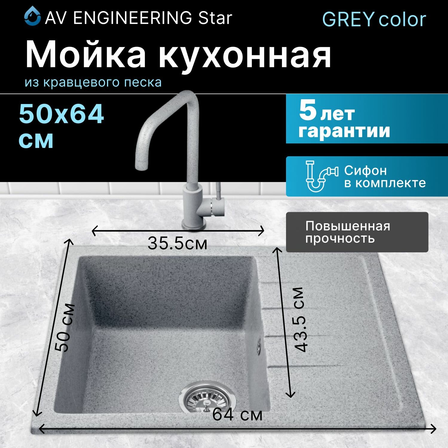 Мойка из искусственного камня AV ENGINEERING Best серый (AV650500BGRA) информация: