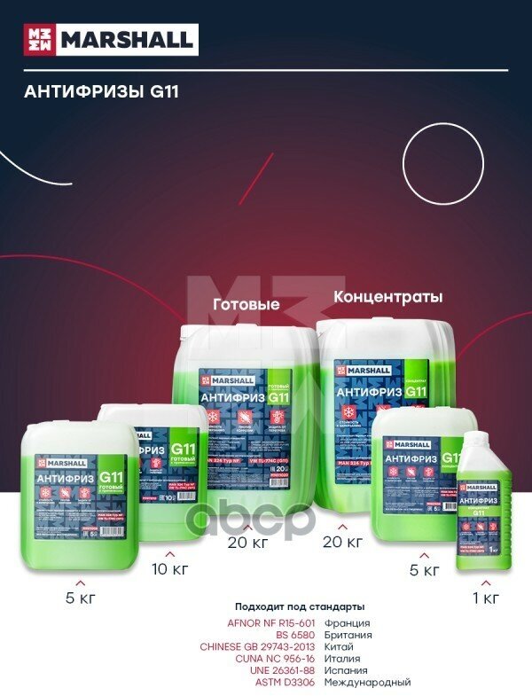 Антифриз Marshall G11, Готовый К Применению, Зеленый, Канистра 10 Кг. (M9811010) MARSHALL арт. M9811010 информация: