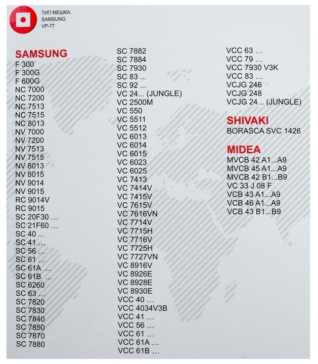 Пылесборник синтетический Ozone micron M-03, 5 шт (Samsung VP-77 ), материал синтетическое волокно информация: