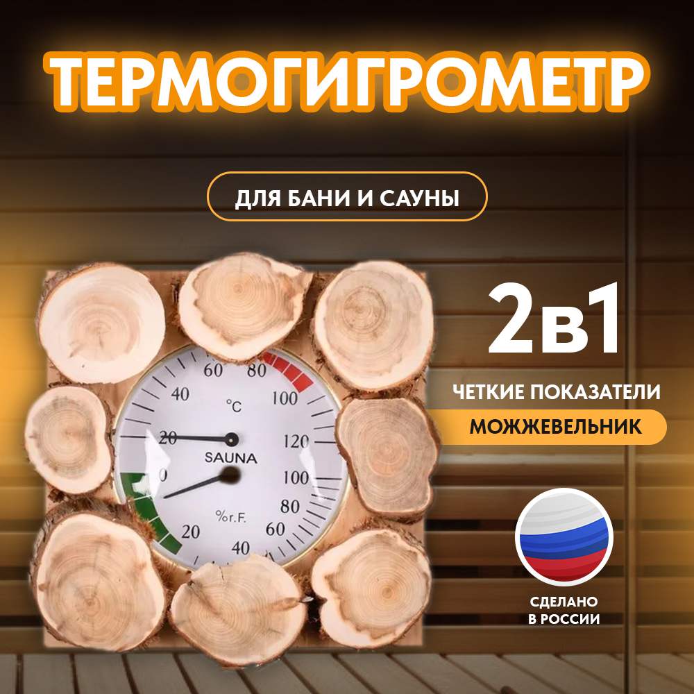 | Комплектация | Термометр для бани, гигрометр для бани |