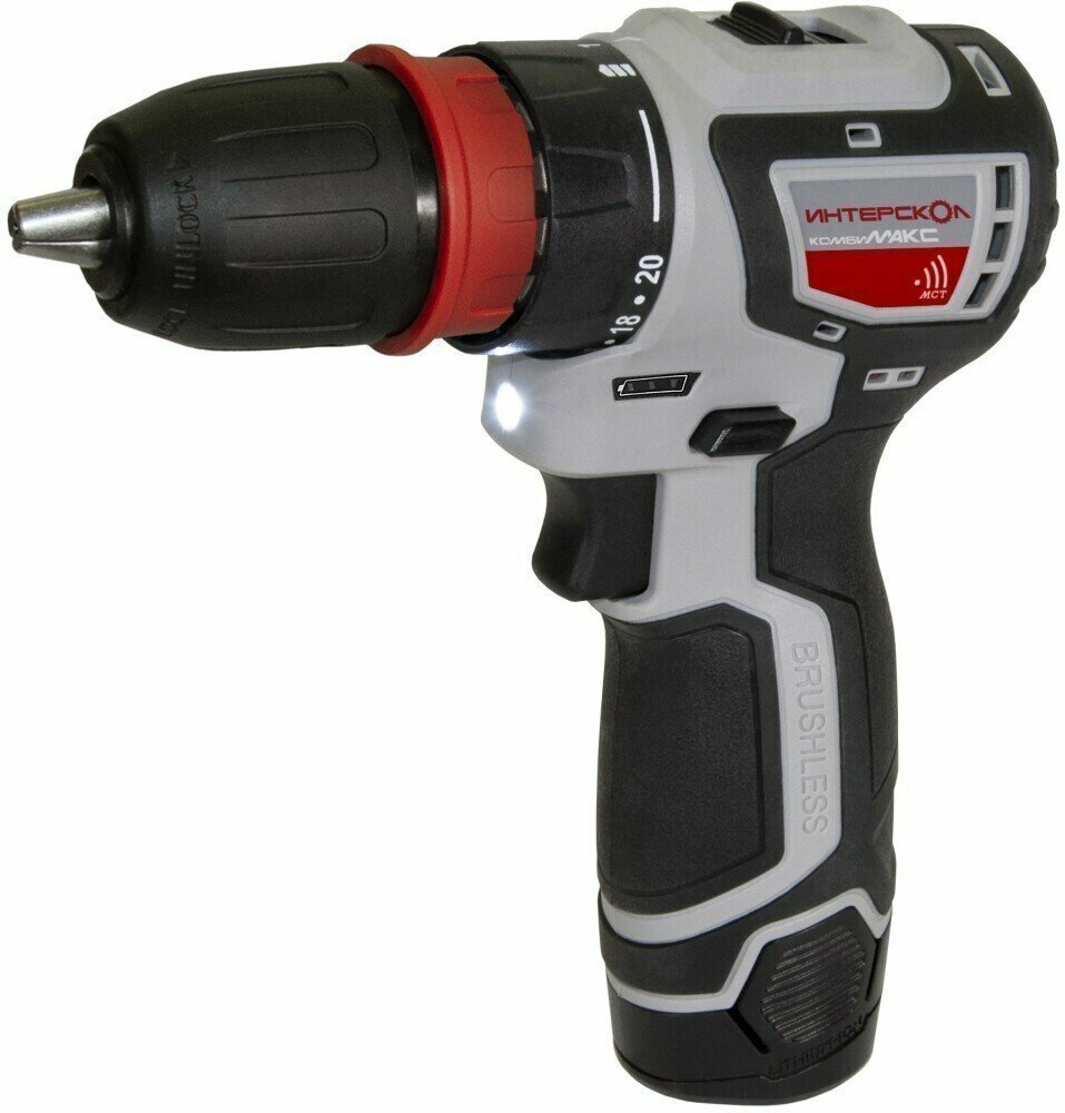 Бесщеточная аккумуляторная дрель-шуруповерт ИНТЕРСКОЛ комбимакс ДА-10/12В 36 687.2.2.77, сумка, 2 АКБ 2 Ач