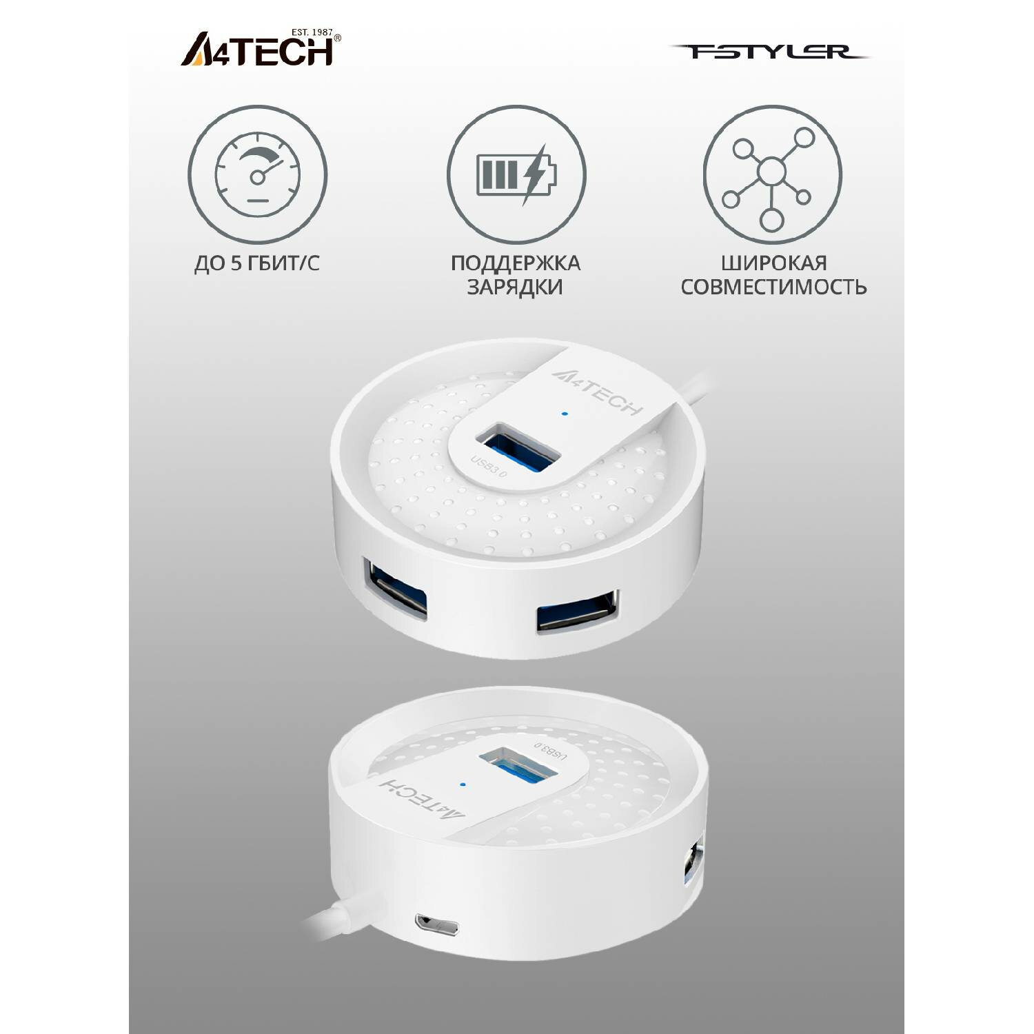 10 цен на Разветвитель USB A4Tech HUB-30, 4 порта, белый
