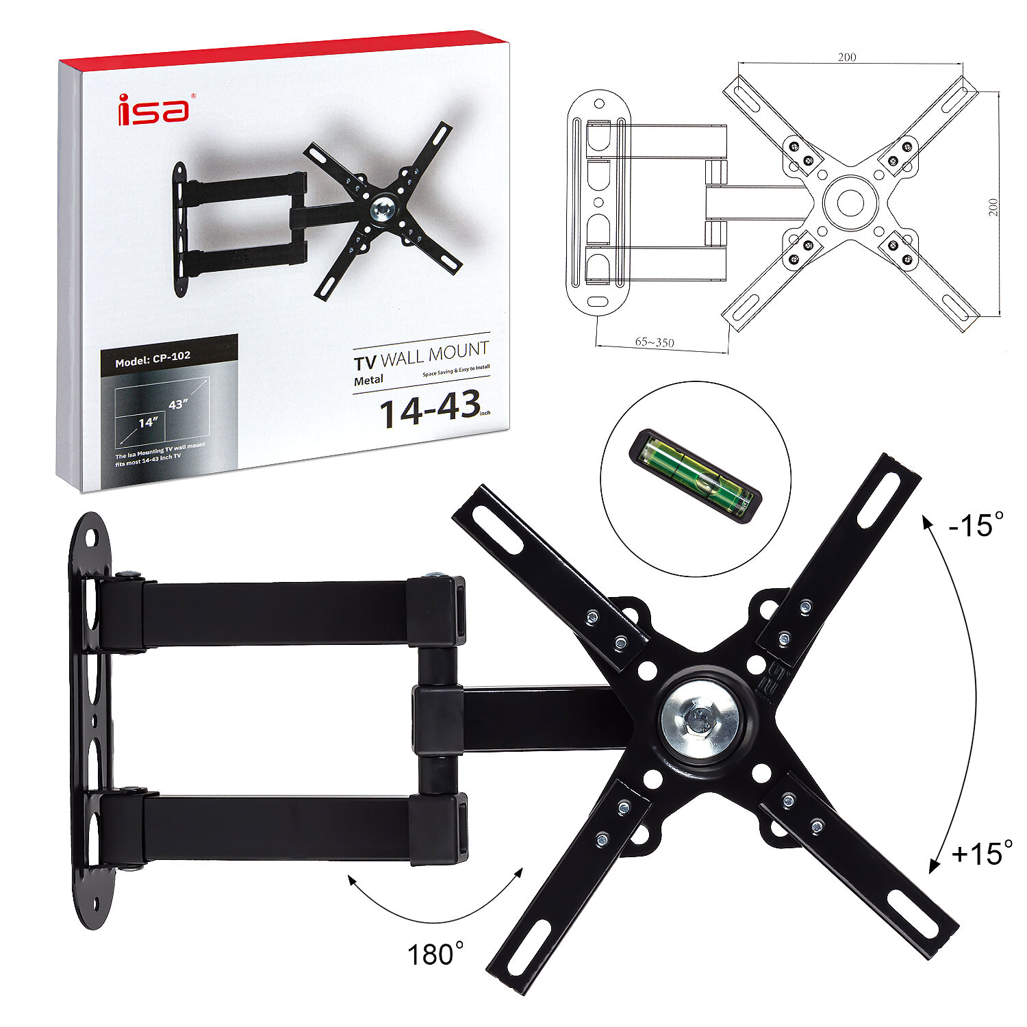 Поворотный держатель/кронштейн для телевизора 15"-40", Full Mount CP102, Настенный, Черный