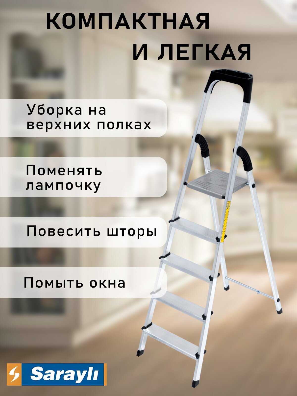 Алюминиевая стремянка Sarayli 5 ступеней 18180 информация: