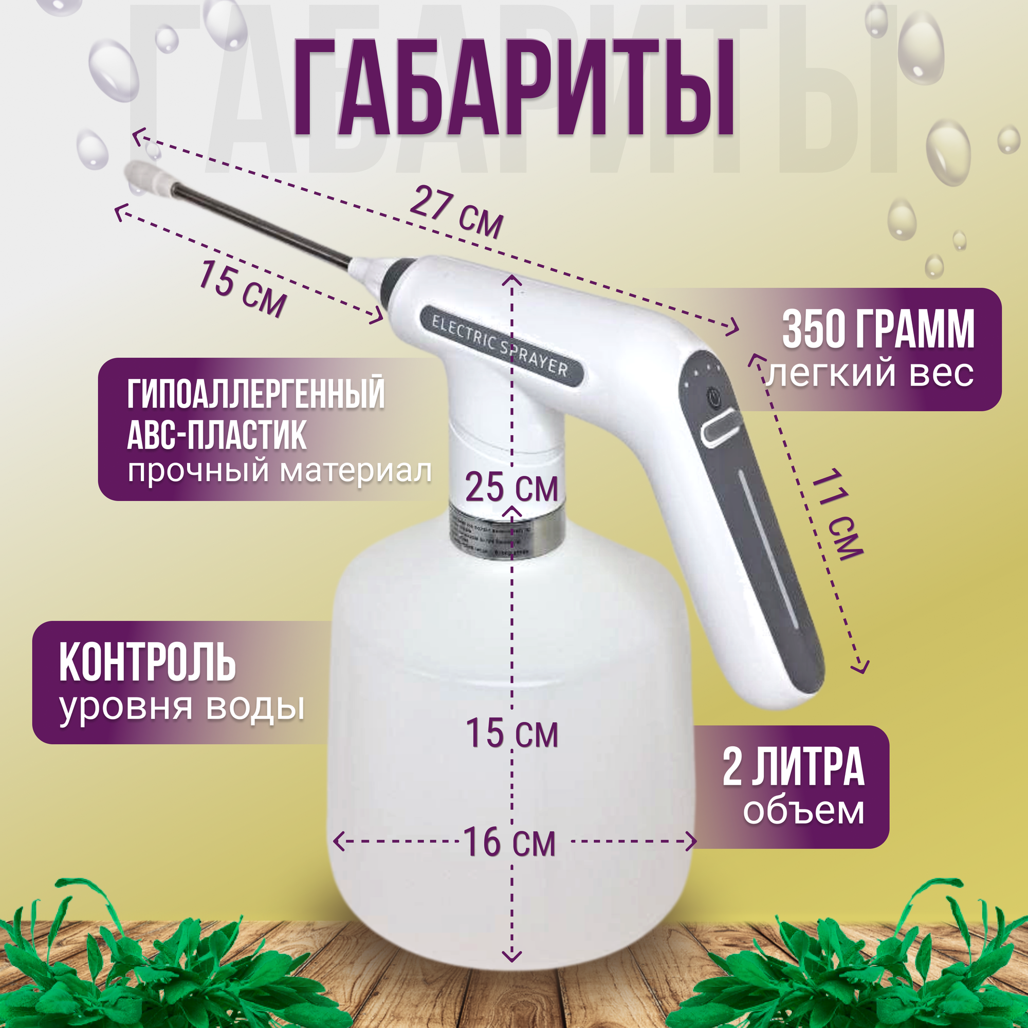 Пульверизатор для растений 2 литра Опрыскиватель аккумуляторный для сада и огорода Опрыскиватель для цветов информация: