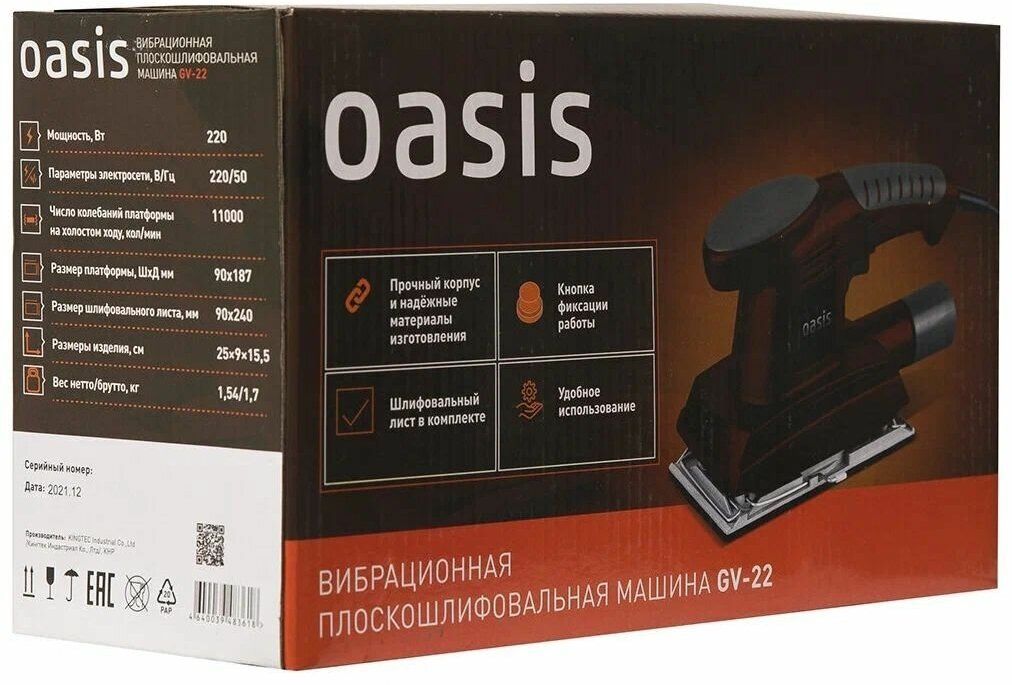 Вибрационная плоскошлифовальная машина Oasis GV-22 . информация: